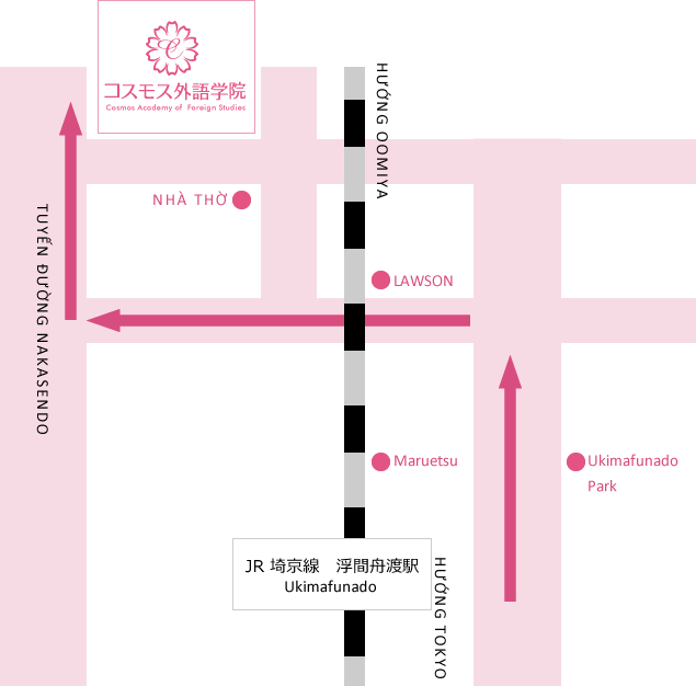 Cách thứcđi lại Từ ga Ikebukuro bắt tuyến tàu Saikyo tới Ga học viện chúng tôi là 13 phút
